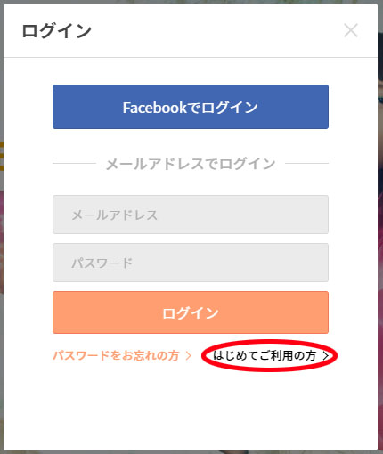 MEET MY GOODSのトップページ、「ログイン」をクリックし、右下の「はじめてご利用の方」から会員登録に進むことができます。